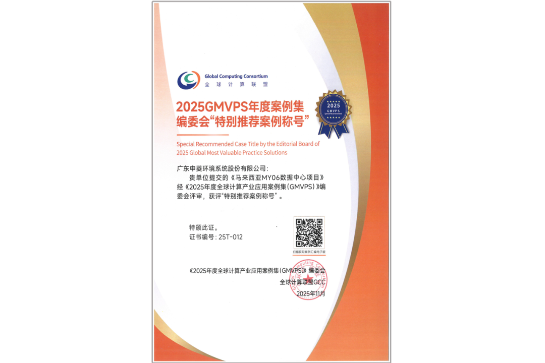 在大会发布的《2025年度全球计算产业应用案例集(GMVPS)》中,申菱环境(301018)“马来西亚MY06数据中心项目”凭借卓越的技术创新与场景落地能力,成功入选并获评“特别推荐案例”称号。
