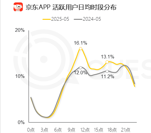 按照阿里方面披露,哪怕淘宝闪购积极向全品类拓展、茶饮占比下降的5月底,茶饮订单的比例也有25%。京东方面没有官方披露。但行业数据显示,在4月份,京东外卖下午茶时段订单占比达到67%。在5月份,京东APP在午间11-12点的活跃比例提升4.1%,远超晚饭时间的提升比例。